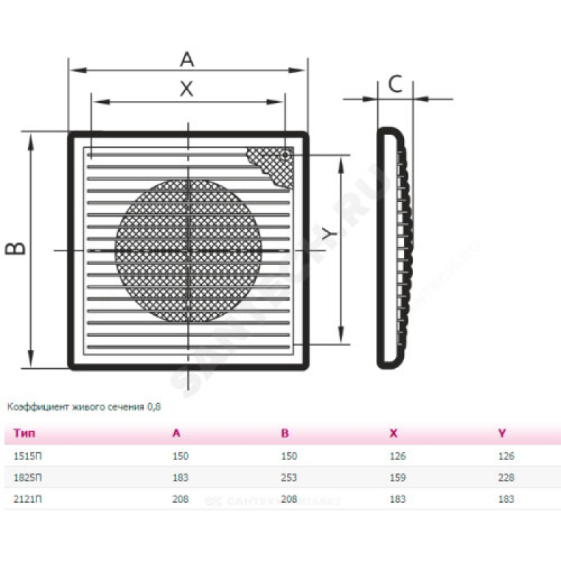 Наименование производителя Решетка вентиляционная приточно-вытяжная АБС 183х253, 1825П