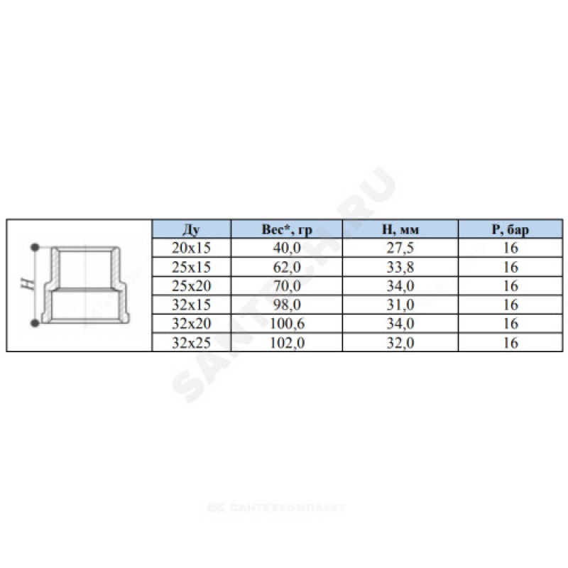 | Диаметр условный переходной, мм | 15 |
