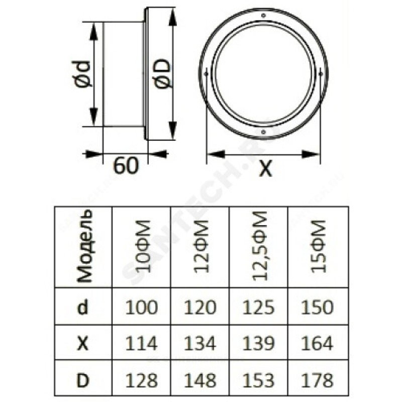 | Диаметр или поперечное сечение воздуховода (вентилятора) | D100 |