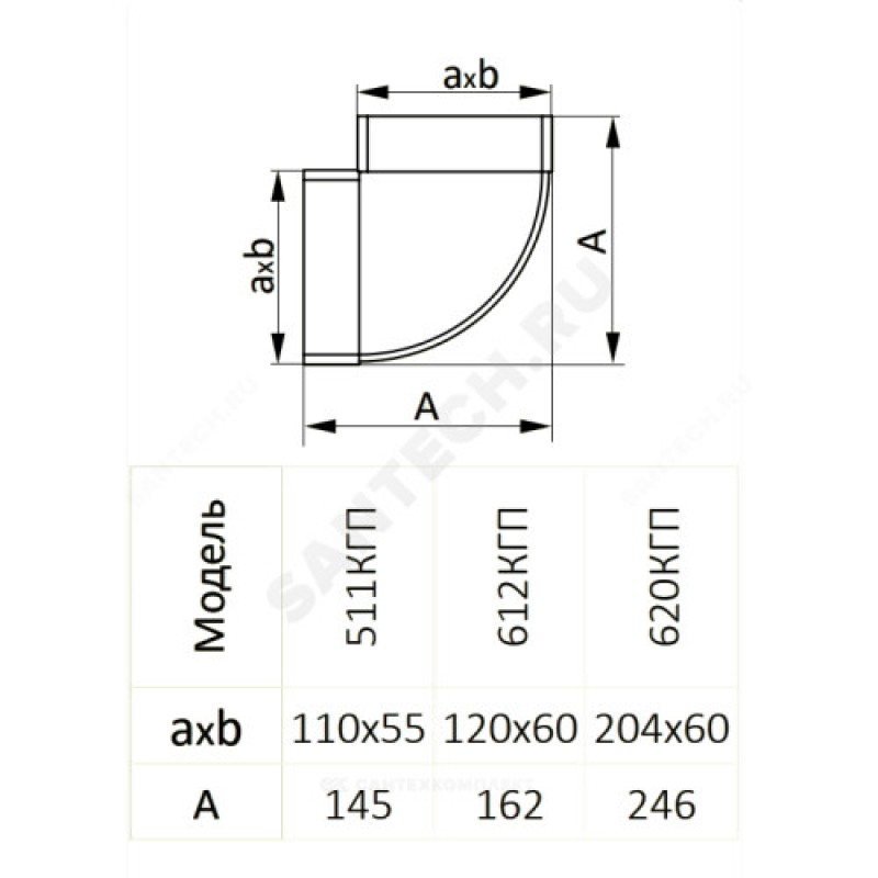 | Наименование производителя | Колено горизонтальное пластик 90°, 60х120 |