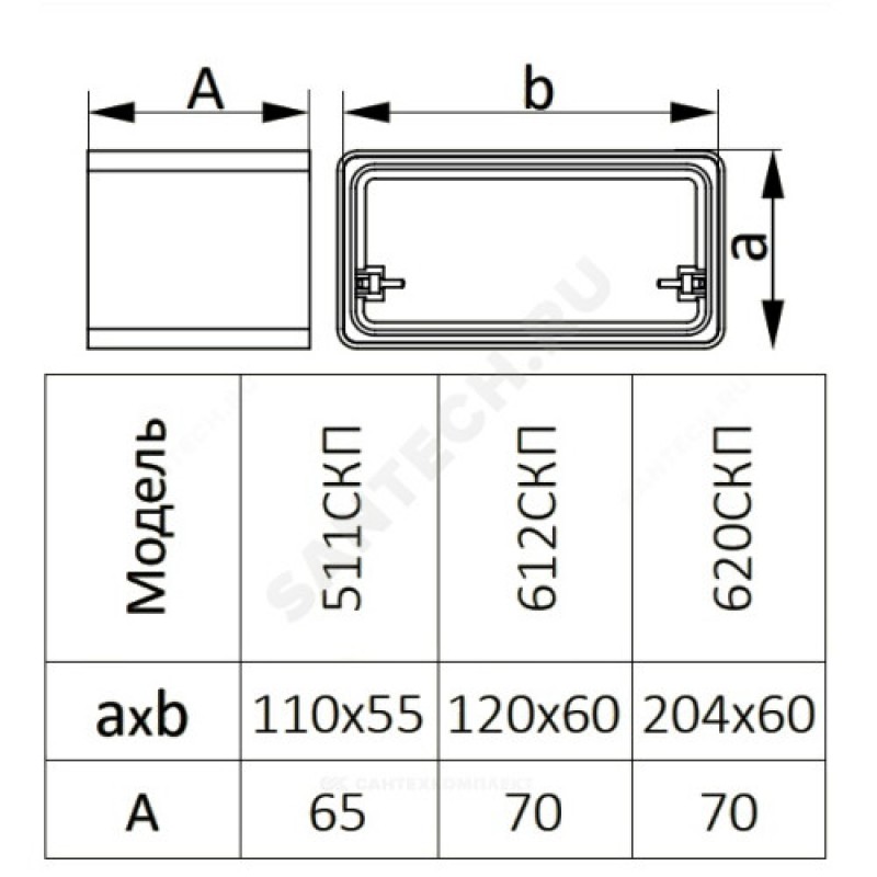 | Диаметр или поперечное сечение воздуховода (вентилятора) | 60х204 |