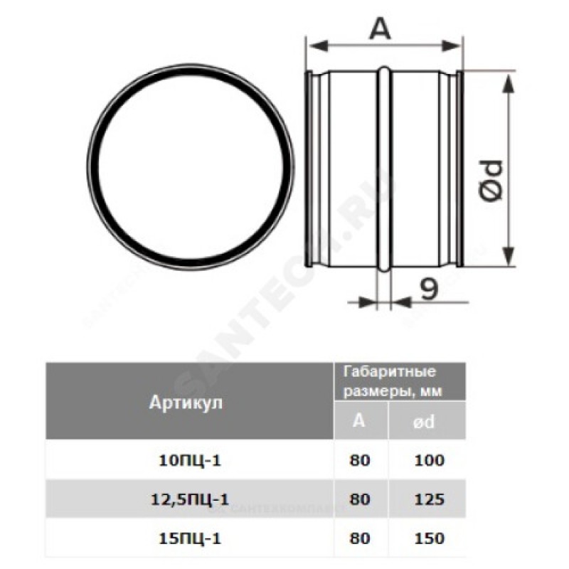 | Наименование производителя | 15ПЦ-1, Соединитель каналов оцинкованный D150 |