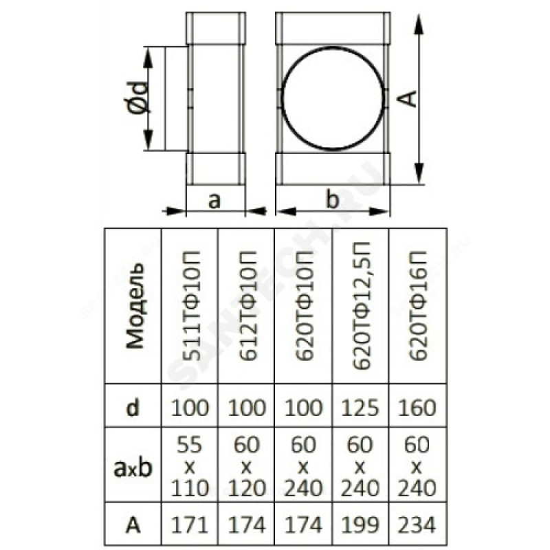 | Наименование производителя | Соединитель Т-обр.пластик,плоских воздуховодов 55х110 с выходом на фланц. воздухораспр.D100 |