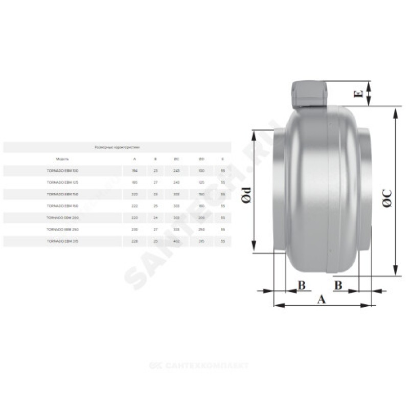 - Артикул:Вентилятор канальный центробежный D125 Эра TORNADO EBM 125