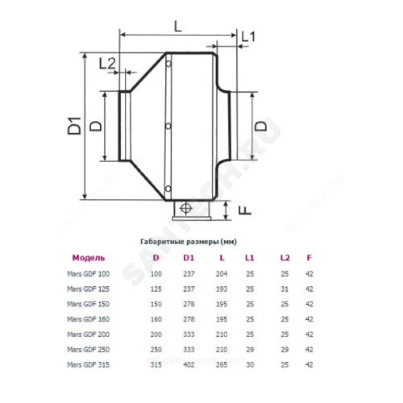 | Наименование производителя | MARS GDF 160, Вентилятор центробежный канальный D 160 |