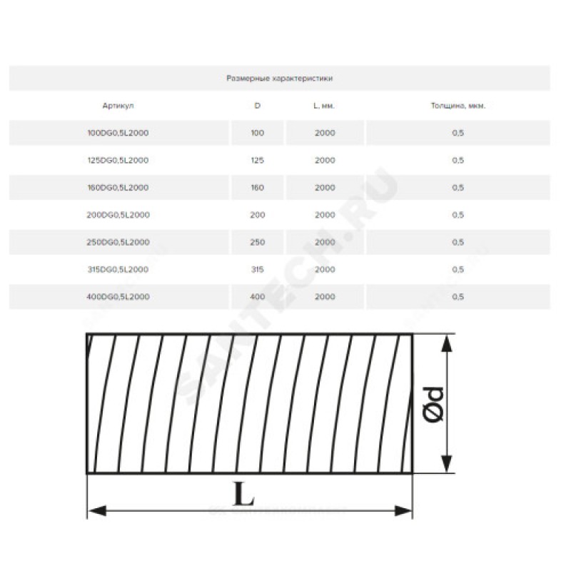 | Наименование производителя | Воздуховод круглый, серия DG, L2000, D100, оцинкованная сталь, 0,5ц |