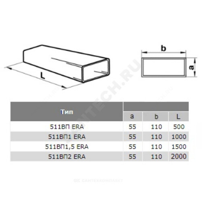 | Наименование производителя | Воздуховод прямоугольный ПВХ 60х204, L=2м |