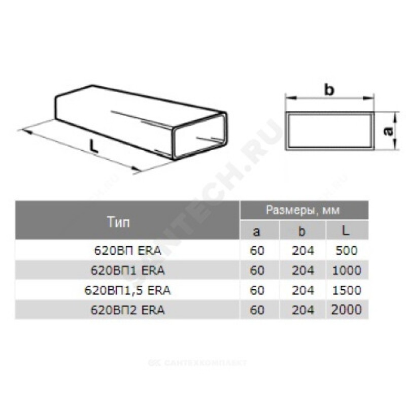 - Артикул:Воздуховод прямоугольный 60х204 L=2000мм ПВХ Эра 620ВП2