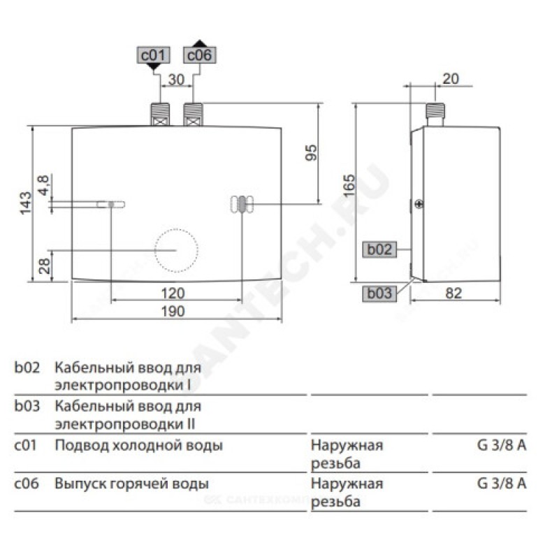 Комплект поставки водонагреватель, тройник, гибкая подводка