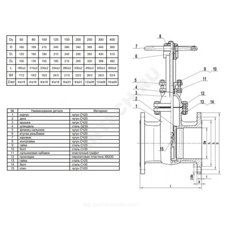 - Артикул:Задвижка чугун 30ч6бр Ду 80 Ру10 фл Китай